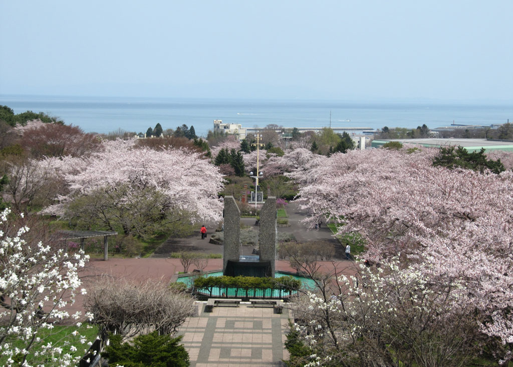 北海道駒ヶ岳と森の桜とグルメのまち